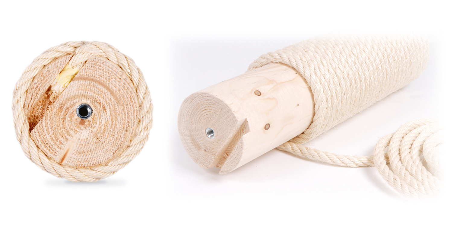 The scratch posts: sisal scratch posts are made of solid wood. They have a total diameter of 12.5. The rope is firmly wound around the post, then fixed with water-soluble glue and placed in a tear-proof groove. Stainless steel M10 connection bolts and screwed sockets guarantee maximum stability.